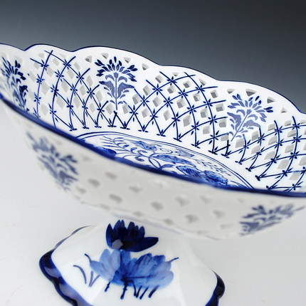 Blue and white hollow fruit plate candy basket Ceramics