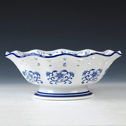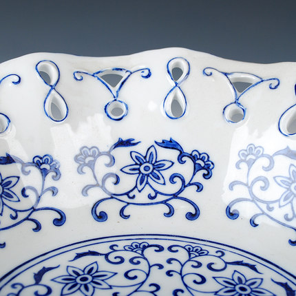 Classical blue and white porcelain Low-foot fruit plate snack basket