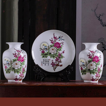 moon birds and flowers three-piece ceramic small vase decoration crafts